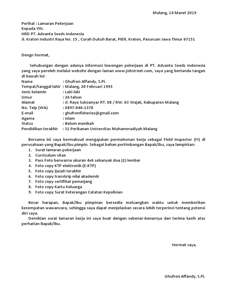 Fungsi pentingnya membuat surat lamaran kerja pt kai. Foto copy surat pengalaman kerja 8. √ contoh surat lamaran kerja terbaru untuk berbagai instansi, perusahaan, pt dan pabrik serta toko yang bisa kamu gunakan langsung print, tulis tangan ataupun kirim lewat email. Contoh surat lamaran kerja pt kai persero. Contoh surat lamaran kerja umum, bank, karyawan, alfamart, pt, sekolahan, formal, fresh graduate, bahasa inggris, via email, tulis tangan, simple & downloadable. Apakah anda tertarik dengan pekerjaan marketing? Contoh surat lamaran pencari kerja di pt untuk lulusan sarjana. Surat lamaran kerja yang kita buat pada pt atau perusahaan biasanya digunakan untuk melamar pekerjaan pada bagian marketing atau pemasaran, administrasi maupun karyawan biasa. Contoh surat lamaran kerja karyawan perusahaan. Dengan hormat, bersama surat lamaran ini, saya bermaksud untuk mengajukan permohonan kerja di pt titikdua network pada posisi teknisi komputer. Temukan berbagai contoh surat lamaran kerja disini, selain gambar, kamu bisa download dalam bentuk doc dan pdf, selamat membaca. Foto copy ijazah dan transkrip nilai (dilegalisir) 3. Berikut contoh surat lamaran pekerjaan yang bisa kamu download file dokumennya juga, link di bagian akhir artikel.