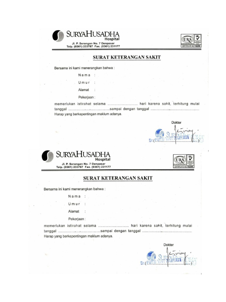 Selain itu, surat keterangan ini juga diperlukan oleh karyawan yang berhalangan bekerja karena sakit. Surat keterangan sakit sangat dibutuhkan oleh pelajar yang tidak bisa masuk sekolah karena sakit. Home ajukan surat sakit tentang kami frequently asked questions info kesehatan syarat & ketentuan daftar sebagai dokter log in sebagai dokter. Demikian surat ijin ini saya buat untuk dipergunakan sebagaiman mestinya. Seberapa penting surat keterangan izin sakit? 1,735 likes · 1,639 talking about this. Terlampir surat keterangan sakit dari dokter. Surat sakit, yang terkadang disebut sebagai surat dokter, surat izin dokter, atau surat keterangan sakit, adalah surat keterangan dari dokter mengenai kondisi kesehatan anda dan pengaruhnya. Ketika anda sudah duduk di bangku smp, sma dan contoh surat izin sekolah smp karena sakit. Berhubungan dengan sakitnya perlu diberi istirahat selama. Lengkap dengan nama dokter, tanda tangan, dan stempel klinik. Surat sakit ini bisa ditulis sendiri, orang tua, atau pun dari instansi kesehatan. Demikian surat keterangan sakit ini dibuat, agar yang bersangkutan harap maklum.